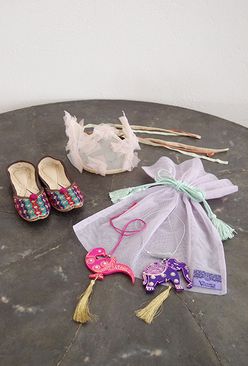 Bathrobe Cotton Double Gauze Glass Beads Tassel Antique Blue