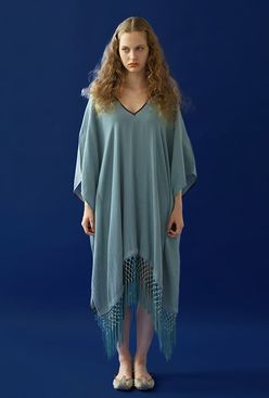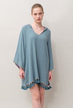 Poncho Robe Cotton Double Gauze Fringe Tassel Antique Blue
