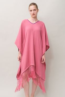 Poncho Robe Cotton Double Gauze Fringe Tassel Rose Pink